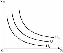 Крива байдужості – це лінія рівної корисності, всі точки якої показують множину наборів комбінацій двох благ, що забезпечують один і той же рівень корисності. Для описання уподобань споживача щодо всіх можливих комбінацій двох товарів застосовується карта байдужості – сукупність кривих байдужості , кожна з яких представляє інший рівень корисності (рис. 2.2.). Вона описує поведінку споживача без врахування видатків на будь-який кошик і є „моделлю бажаного”.
