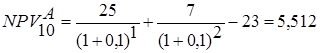 Приклад розрахунку чистої приведеної вартості для проекту А при ставці дисконту 10%: