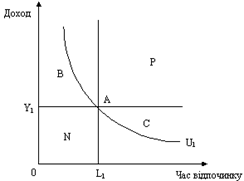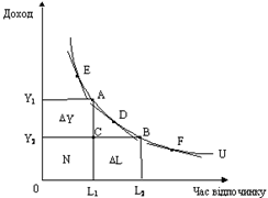 де U — рiвень корисностi, Y— характеризує одиницi доходу, L — години вiдпочинку.