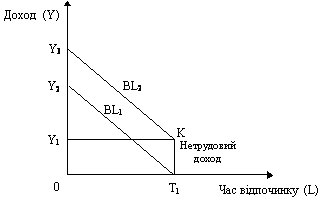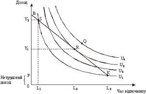 На ринку робочої сили iндивiд, який бажає отримати доход, обмiнявши свій час і послуги на грошi, має визначитись, яку частину часу iз свого денного, тижневого, мiсячного i т. д. бюджету треба запропонувати на ринку, а яку — використати для вiдпочинку. Час вiдпочинку — це час поза ринком — включає в себе не тiльки час, використаний з метою одержання задоволення (кiно, театр, книги тощо), а й такi види трудової дiяльностi поза ринком, як прибирання квартири, турбота про дiтей, ремонт i т. п.