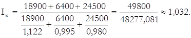 Для того, щоб визначити середню зміни ціни за всіма видами товарів обчислимо середньозважений зведений індекс інтенсивного показника: