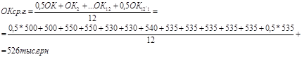 ОФ ср. = 5229 + (557х6/12) – (127 х 2/ 12) = 5486,3