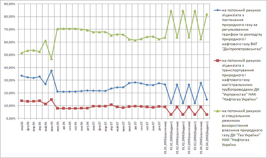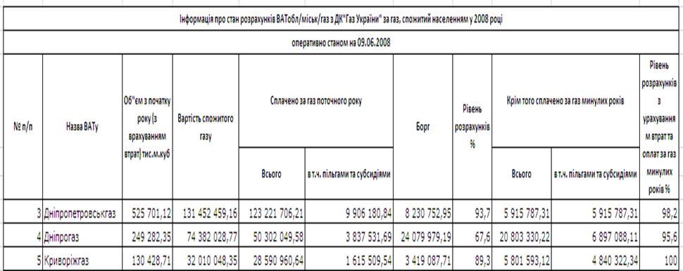 Рівень оплати у 2008 році за постачання газу у Дніпропетровській області населенням по конкуруючим компаніям ВАТ «Дніпропетровськгаз», ВАТ «Дніпрогаз», ВАТ «Криворожгаз»