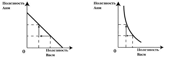 б) различными у различных членов общества. В последнем случае мы подразумеваем различную способность людей извлекать полезность из их дохода (денежного или натурального). Трудно не согласиться с тем, что для богатого предельная полезность его денежного дохода вовсе не такая, как у бедного человека. Поставьте себя на место миллионера, а затем на место скромного конторского служащего: у кого будет выше предельная полезность дополнительной денежной единицы дохода? Очевидно, у последнего из названных субъектов. Тогда предполагается, что уменьшение полезности, например, у Васи, должно компенсироваться в ходе распределения не точно таким же, а бульшим приращением полезности у Ани. Такой вывод не должен показаться странным, если, напомним, речь идет о максимизации суммы индивидуальных полезностей.