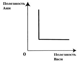 Речь идет о решении задачи «максимина», т. е. максимизации благосостояния лица с минимальным доходом. Другими словами, подход Дж. Роулса означает, что справедливость распределения дохода зависит только от благосостояния самого бедного индивида. Роулсианская общественная кривая безразличия будет иметь следующий вид: