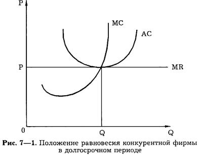 Конечно, в течение короткого отрезка времени в условиях совершенной конкуренции фирма может получать сверхприбыли или нести убытки. Однако для длительного периода такая предпосылка нереальна, так как в условиях свободного входа и выхода из отрасли слишком высокая прибыль привлекает в данную отрасль другие фирмы, а убыточные фирмы разоряются и уходят из отрасли.
