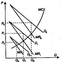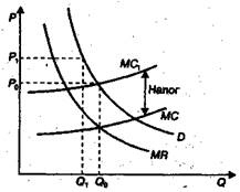 Кривая спроса на продукцию фирмы-монополиста - наклонная и совпадает с кривой рыночного спроса. Издержки и рыночный спрос являются ограничителями, которые не позволяют монополисту произвольно устанавливать высокую цену на свою продукцию. Максимизируя прибыль, он определяет цену и объем производства исходя из равенства предельного дохода и предельных издержек. Поскольку кривая предельного дохода монополиста лежит ниже кривой спроса, он будет продавать продукцию по более высокой цене и производить ее в меньшем объеме, чем в условиях совершенной конкуренции.