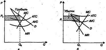 Правило равенства предельного дохода предельным издержкам используется фирмами при любых рыночных условиях. Особенностью совершенной конкуренции является равенство предельного дохода и цены. Если рыночная цена установлена выше минимальных средних валовых издержек фирмы, то ее задачей является получение максимума прибыли. Однако фирма будет продолжать производить, когда цена ниже минимума средних валовых издержек, но не ниже средних переменных издержек. В этом случае ее задачей будет минимизация своих убытков. Если цена окажется ниже минимума средних переменных издержек, фирма предпочтет прекратить свою деятельность.
