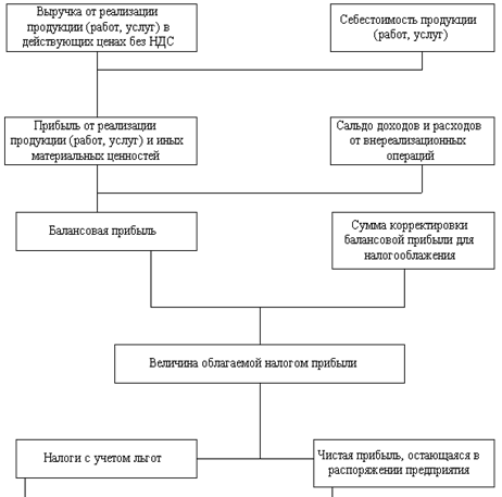 Типовая схема формирования чистой прибыли предприятия представлена на рисунке.