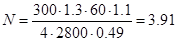 Принимая коэффициент отражения от стен и потолка равными 50% и 30% соответственно и с учетом полученного индекса помещения и типа светильника, величина использования светового потока составляет h=49%. При норме освещенности 300 лк, площади помещения S=60 м2, коэффициент неравномерности освещения z= 1.1, коэффициент запаса К3=1.3, световом потоке одной лампы 2800 лм количество светильников, шт., согласно формуле (4,5), составит: