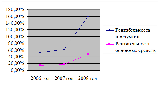 - за рассматриваемый период предприятие значительно увеличились показатели эффективности работы выраженные в приросте выручки в 2007 году – 12,2 %, а в 2008 – 90,2%; рентабельности продукции на 8,5% в 2007 году и на 97,1 % в 2008 году за счет того, что цена на минеральные удобрения на внешних рынках в середине 2008 года выросла более чем в два раза;