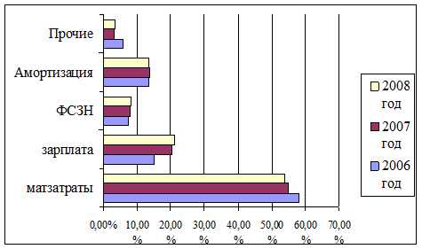 - значительно выросла статья статью «Оплата труда» , удельный вес которой увеличился в 2007 году на 5,4 %, а в 2008 году на 0,9%;