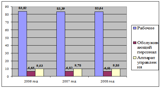 - кроме того, снижение численности производственно-промышленного персонала наблюдается на фоне роста удельного веса аппарата управления на 0,32%.