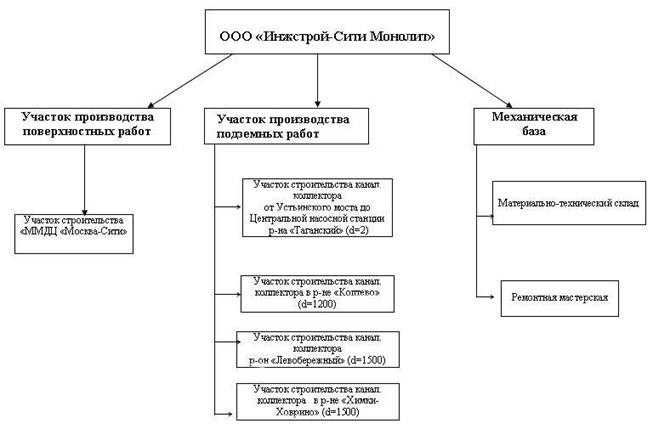 Объектом дипломного проекта является общество с ограниченной ответственностью «Инжстрой-Сити Монолит», созданная как управляющая фирма строительства объекта ММДЦ «Москва-Сити», выполняющая функции генподрядчика, координирующая деятельность субподрядных организаций, обеспечивающая субподрядные организации проектной документацией, материалами, механизмами, электроэнергией, контролирующая и отвечающая за качество и сроки выполнения работ всех субподрядчиков.