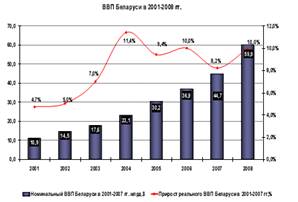Если 2001–2008 гг. РБ показывала высокие темпы роста и улучшения качества жизни граждан, то 2009 г. внес свои коррективы. Кризисные явления начали проявляться еще в конце 2008 г., когда начали возникать проблемы со сбытом продукции за рубеж. Соответственно, возник дисбаланс по счету текущих операций и нарушился платежный баланс. Все это привело к девальвации в январе 2009. Но с учетом высокого импортного промежуточного потребления товары за границей не стали дешевле на размер девальвации, что было негативным моментом для экспортоориентированных производителей.