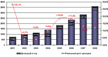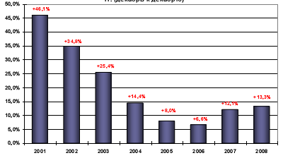 И в текущем году мы отмечаем негативное влияние мирового кризиса на экономику. Как отмечалось выше, ВВП за январь-август вырос в сопоставимых ценах на -0,3 процента. В прошлом году за аналогичный период рост ВВП составил 10,3 процента.