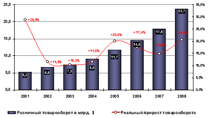 Рис. 2.7 Объем внешней торговли РБ за 2000–2008 гг. [13]