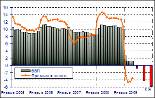 Первоначальное значение прироста ВВП за январь 2009 г. находилось на уровне 4,2%, затем показатель был пересмотрен сначала до +3,6%, а затем до +2,6%. В этой связи не исключен пересмотр темпов роста ВВП в последующие месяцы. (рис 2.8)