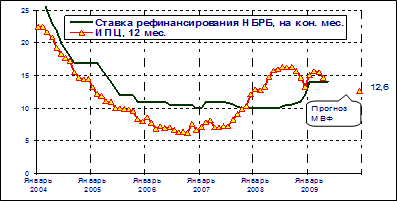 Тем не менее, высокая ставка рефинансирования Национального банка (14% с начала 2009 г.) позволила сдержать инфляционные тенденции. (рис. 2.10)