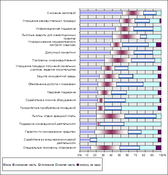 Это говорит о том, что никаких радикальных изменений в государственной поддержке МП за последние два года не произошло и сложившиеся тенденции ожиданий от государства помощи представителями малого предпринимательства так и остаются на прежнем уровне.