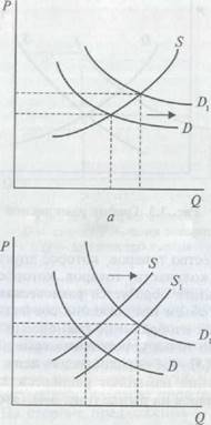Колебания спроса и предложения изменяют равновесную цену и равновесное количество товаров на рынке (рис. 3.4). Это выражается в следующем: