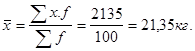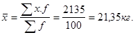 Чтобы определить среднюю величину из интервального ряда распределения нужно его преобразовать в дискретный, например 20+21/2=20,5 кг.