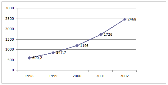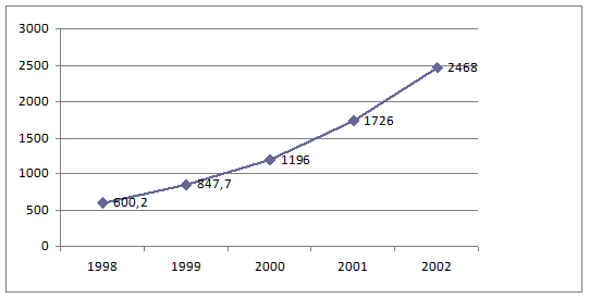 В 2004 г. =2000,1 + 1000 * 25,9 – 14,8 =