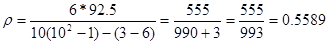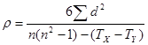 – разность между рангами взаимосвязанных признаков X и Y отдельных единиц совокупности;
