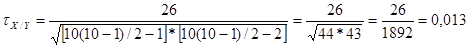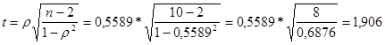 Расчетное значение статистики Стьюдента сравнивается с табличным при уровне значимости 0,05 и числе степеней свободы v = n – 2 = 10 – 2 = 8 равно 2,306.