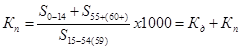 Где и - умершие в возрасте до одного года в этом году t соответственно из поколений года t и года t-1, и - численности поколений, родившихся в году t и t-1.