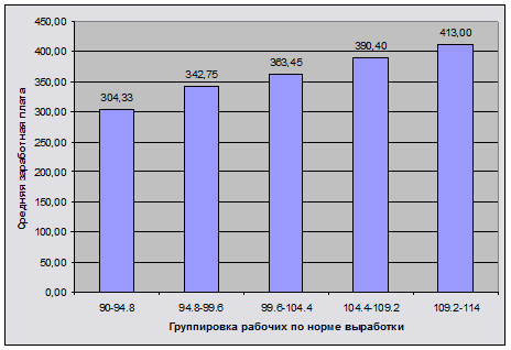 Для изучения зависимости между выполнением норм выработки и заработной платы произведите группировку рабочих по выполнению норм выработки, выделив пять групп с равными интервалами. По каждой группе и в целом совокупности работников подсчитайте:
