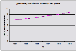 Вывод: график показывает, что производство продукции на предприятии с 1994 г. по 1999 г. наблюдалась тенденция увеличения производства.