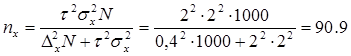 Необходимая численность выборки при вероятности 0,954 (гарантийный коэффициент