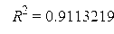 показывает, что регрессия объясняет 91,13 процентов вариации признака.