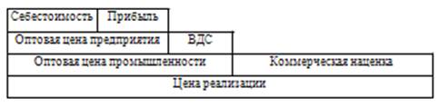 Денежным выражением стоимости единицы промышленной продукции является цена. Промышленную продукцию можно оценить по себестоимости, по оптовым ценам и по розничным ценам. Оценка продукции по себестоимости характеризует сумму затрат предприятия, связанных с изготовлением продукта, но не включает накопление. Оптовая цена предприятия включает себестоимость и расчетную прибыль. Оптовая цена промышленности состоит из оптовой цены предприятия изготовителя и налога на добавленную стоимость. Розничная цена (цена реализации) включает цену промышленности и коммерческую наценку (см. рисунок 1).