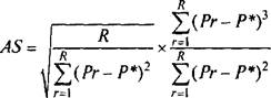 не зависящая от масштаба, выбранного при измерении варианта, безразмерная характеристика (нормированный момент третьего порядка), рассчитывается по формуле: