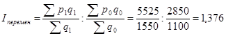 Вывод: - индекс цен переменного состава показывает, что цена литра молока увеличилась на 37,6 % или на 0,974 руб. что обусловлено изменением стоимости единицы продукции на каждом рынке и изменением товарооборота на рынках.