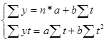 Для выравнивания ряда динамики используется прямая. Прямая для выравнивания ряда динамики имеет вид:
