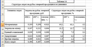 Уровень затрат на рубль товарной продукции определим по формуле (1.16). Расчеты затрат на рубль товарной продукции, а также их динамику по каждому виду продукции произведем в таблице 11.