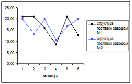Провести сравнительный анализ равномерности поставок. Решение оформить в таблице. Построить графическое изображение. Написать текст экономических выводов.