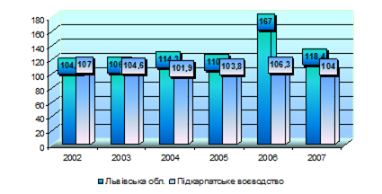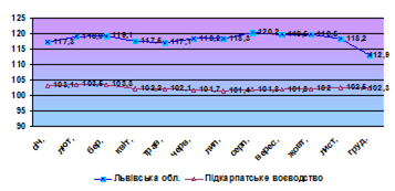 3.4Транскордонні порівняння динаміки цін виробників промислової продукції Львівщини та Польщі (Підкарпатського воєводства)