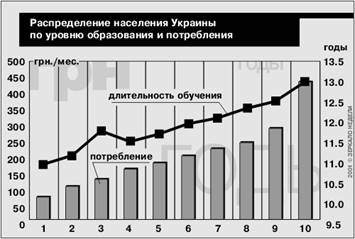 Низкий уровень жизни. Сегодня население Украины в целом бедно. Об этом говорят самые разнообразные показатели: низкое качество рациона питания, постоянный отток граждан за пределы страны, низкая рождаемость, высокая заболеваемость и смертность, неудовлетворенность широких слоев общества общеэкономической ситуацией и своим материальным положением. Несмотря на то, что доля затрат на питание в бюджете средней украинской семьи выросла за 1991—2000 годы с 33 до 64%, качество питания заметно ухудшилось: энергетическая ценность дневного рациона снизилась с 3597 до 2505 ккал, содержание белков — со 105 до 73 г, жиров — со 124 до 71 г, кальция — с 1362 до 848 г (табл. 1 на стр. 10). Но может быть, это закономерность, характерная для нового отношения к режиму питания в богатых странах?