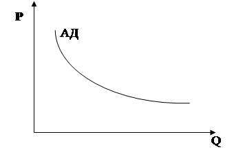 Графічно сукупний попит зображується кривою АД, де Р – рівень цін; Q – реальний обсяг виробництва (рис.1.2).