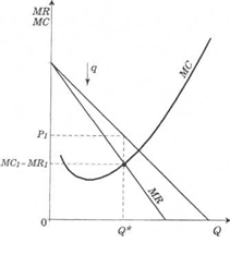 1.Якщо MR - МС, то МЕР = 0. Це означає, що ніякого додаткового прибутку, який долучиться до ЕР у результаті виробництва ще однієї додаткової одиниці продукції, не буде отримано. EP за даного рівня виробництва Q* є максимальним. Будь-який випуск нижче цього рівня означає, що фірма може нарощувати випуск для збільшення прибутку, і навпаки.