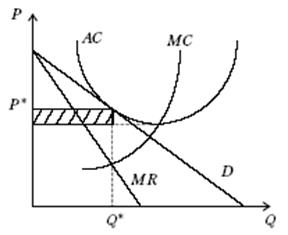 Поза рівнем виробництва Q* МС > MR і при виробленні додаткової одиниці більше додається до TС, ніж до TR. МЕР < 0, ЕР падає.