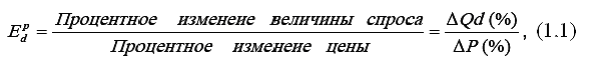 Эластичность спроса по цене определяется отношением процентного изменения величин спроса (объема спроса) к процентному изменению цены. Она рассчитывается по следующей формуле:
