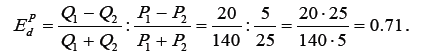 Пример. При цене 10 руб. за единицу товара величина спроса составляла 80 единиц. При повышении цены до 15 руб. величина спроса сократилась до 60 единиц. Эластичность спроса по цене в этом случае будет равна: