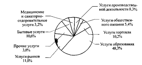 Услуги образования. Потребительская кооперация стала заниматься платным образованием в последнее десятилетие XX в., т. е. в условиях экономической реформы. Наличие свыше 100 образовательных учреждений (вузов, техникумов, колледжей), в которых работают высококвалифицированные специалисты, позволяет оказывать значительный объем образовательных услуг, составляющих свыше 40% в общем объеме платных услуг, предоставляемых организациями потребительской кооперации[15, c. 121-123].