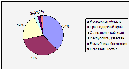В ЮФО наибольшее количество предприятий малого бизнеса сосредоточено в Ростовской области (34,4% от общего числа малого бизнеса в Южном Федеральном округе), Краснодарском крае 30,9%, в Ставропольском крае 19,1%. Наименьшее в Республике Дагестан 2,5%, в Республике Ингушетия 2,3%, Северной Осетии 2,2%. Такое распределение числа малых предприятий в целом укладывается в общую картину размещения населения и хозяйства Юга России.