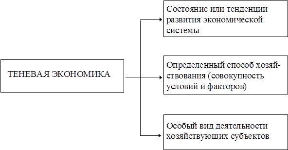 Первый из них характеризует теневую экономику как состояние или тенденции развития экономических отношений.